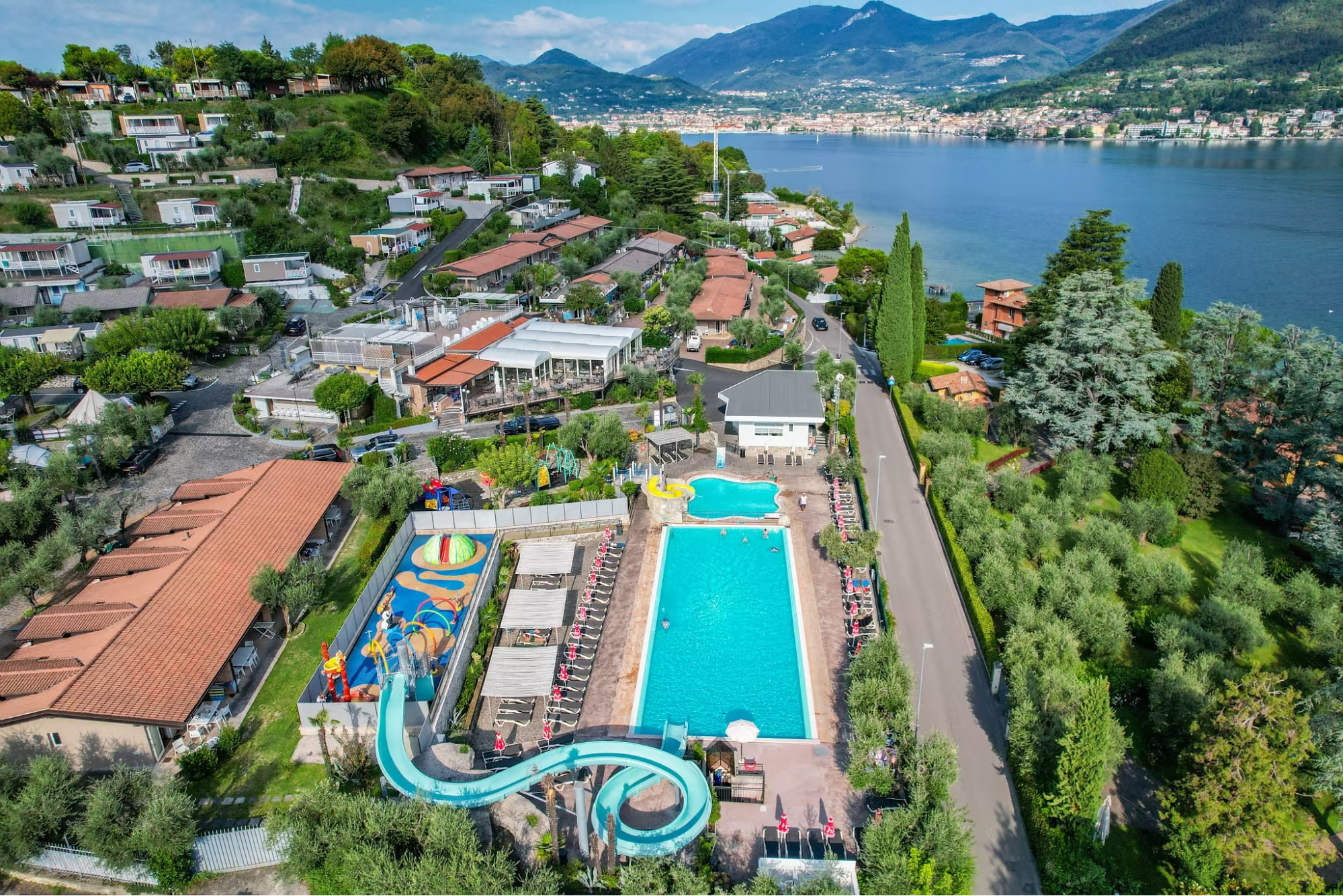 Over in Lazise, Piani di Clodia definitely levels up the camping game. It feels more like an open-air resort with a touch of class. What hits you first are the themed lagoons and wellness spots, it’s the go-to for anyone who wants that “back to nature” vibe but still wants a soak in a whirlpool at the end of the day.