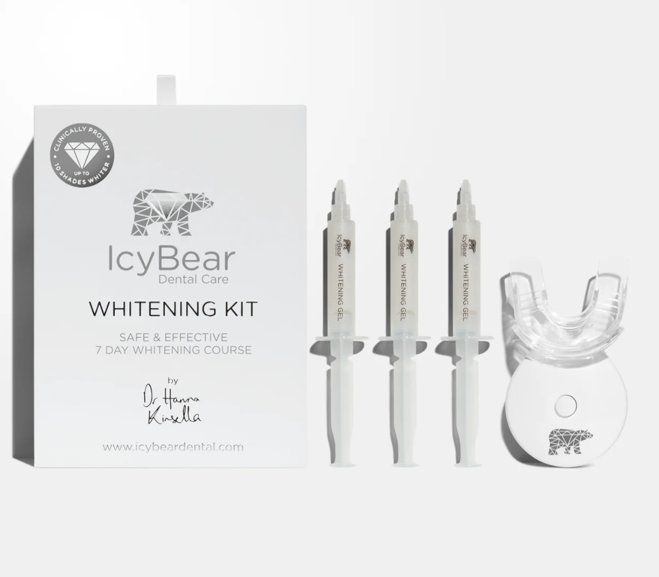 Icy Bear LED Teeth Whitening Kit, £59.99: Professional-grade results at home. Featuring a powerful 18% PAP formula, premium whitening gel, and an LED light for faster, more effective whitening, it removes stains while protecting enamel.
