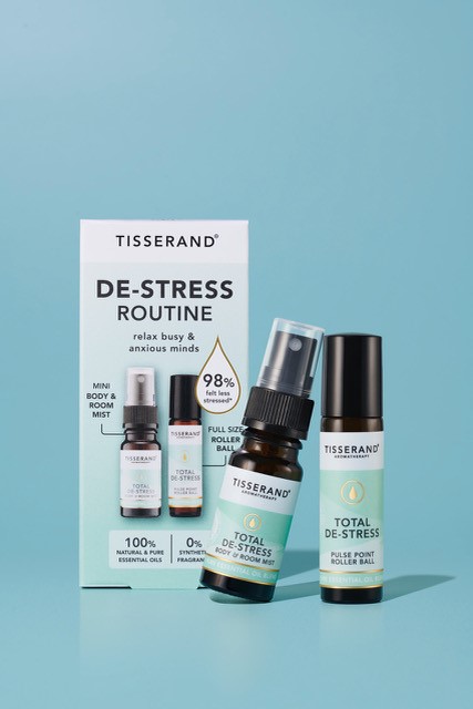 De–Stress Routine: Helps users to slow down and unwind with Geranium, Orange & Nutmeg 100% natural, pure essential oils. Kit contains a mini body & room mist and full size roller ball.
