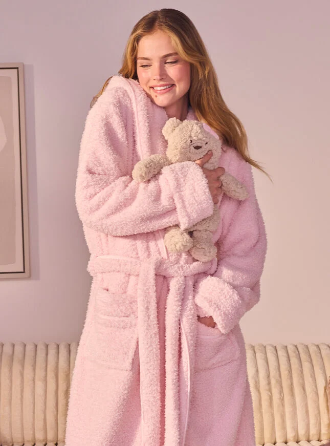 Snuggle up in this fluffy boucle long robe from Boux Avenue, crafted from cloud-soft boucle, it offers a beautifully textured feel thats both cosy and effortlessly chic.