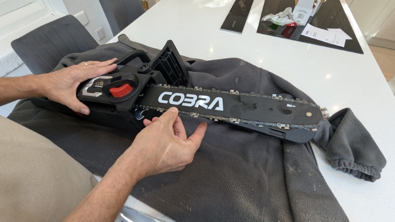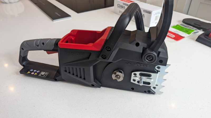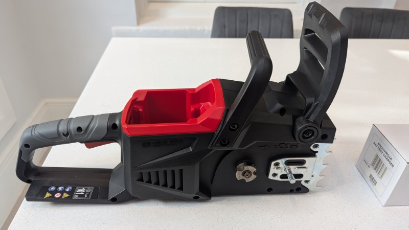 It arrived with just a very small amount of assembly. It took me just two minutes to attach the chain (once I had it the right way round!) and the bar. This was attached with a large hand tightened nut, and tensioned with a further hand tightened nut. So genuinely tool-less chain tension, which is great. Other that that, you just need to charge the battery and fill the reservoir with bar/chain oil.
