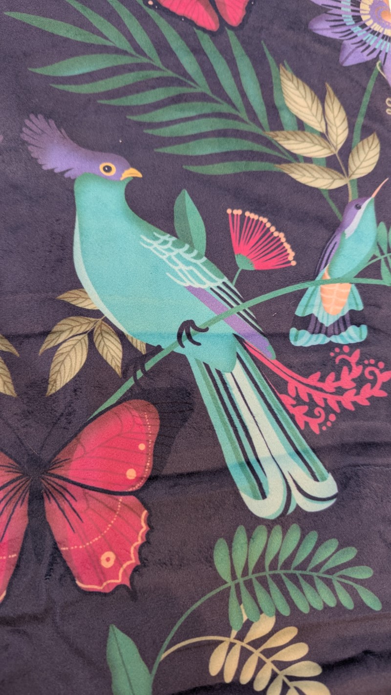 At first, I hesitated. Navy? Tropical birds? Would it be too loud? Too much? But something about them kept pulling me back. The deep navy felt dramatic but calming, and the bursts of colour—lush green leaves, dragonflies, birds in shades of coral, teal, and gold—looked like artwork you could live with.