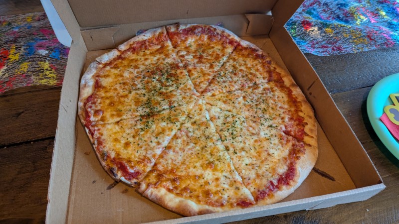 When the boys had finished on the course, they came back up to this area and were served a large pizza between two, large bowls of chips and cucumber and carrot sticks (which somewhat surprisingly went down well!)
