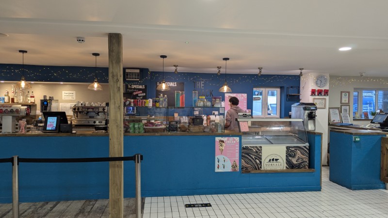 Upstairs there is a comfortable lounge with regular tables and sofas. There is a bar that serves soft drinks as well as alcoholic drinks and a menu with items such as pizza and chips.